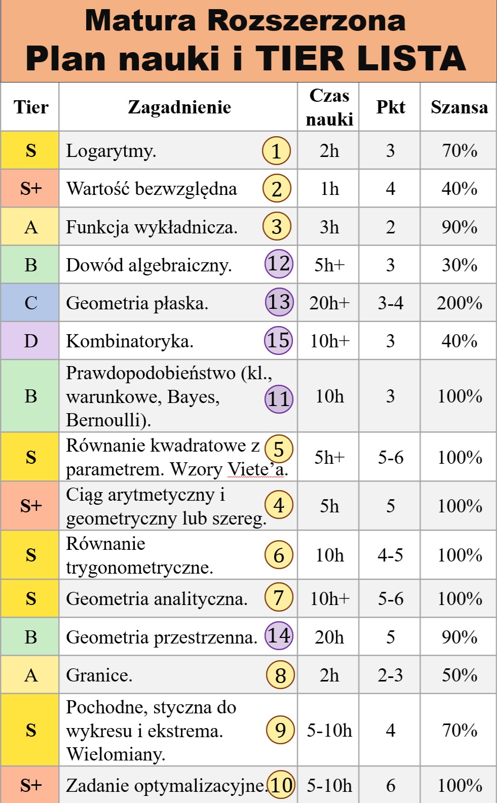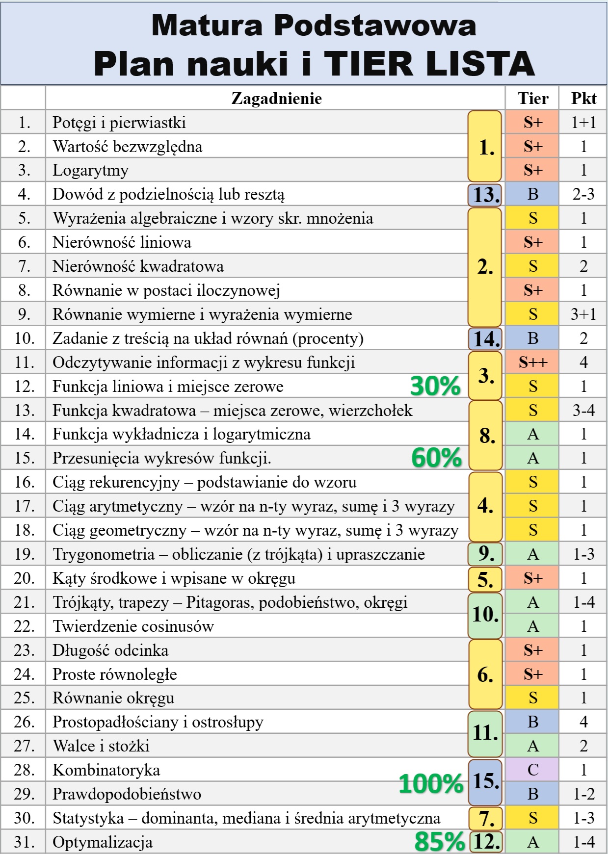 - Tier listę wszystkich zagadnień, czyli oznaczenie z których zagadnień możesz zdobyć najwięcej punktów najmniejszym wysiłkiem. Kolejność od najlepszy do najgorszych, to: S+, S, A, B, C