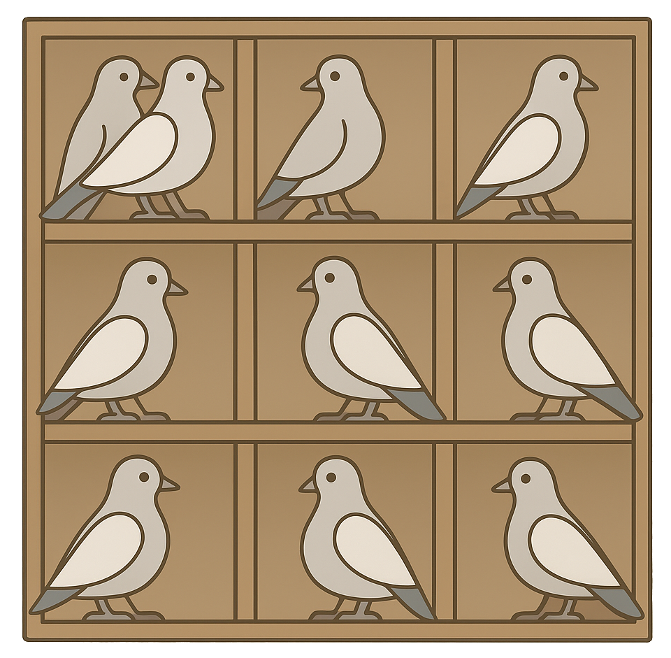 Jeżeli \(10\) gołębi włożymy do \(9\) klatek, to musi istnieć klatka z dwoma gołębiami: